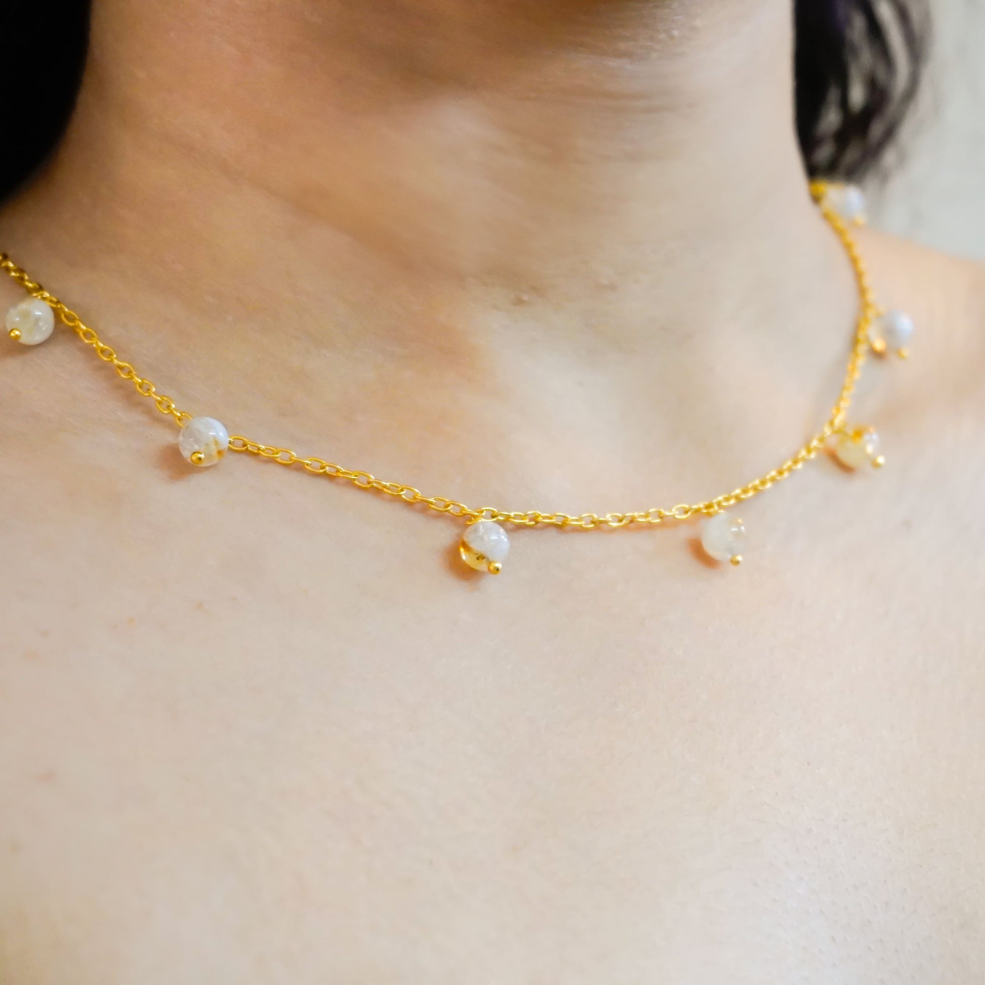 This Citrine Necklace is designed for everyday ease -clean, minimal, and effortlessly versatile. With soft yellow citrine beads spaced across a gold-plated chain, it adds just the right touch of polish to your everyday outfits.